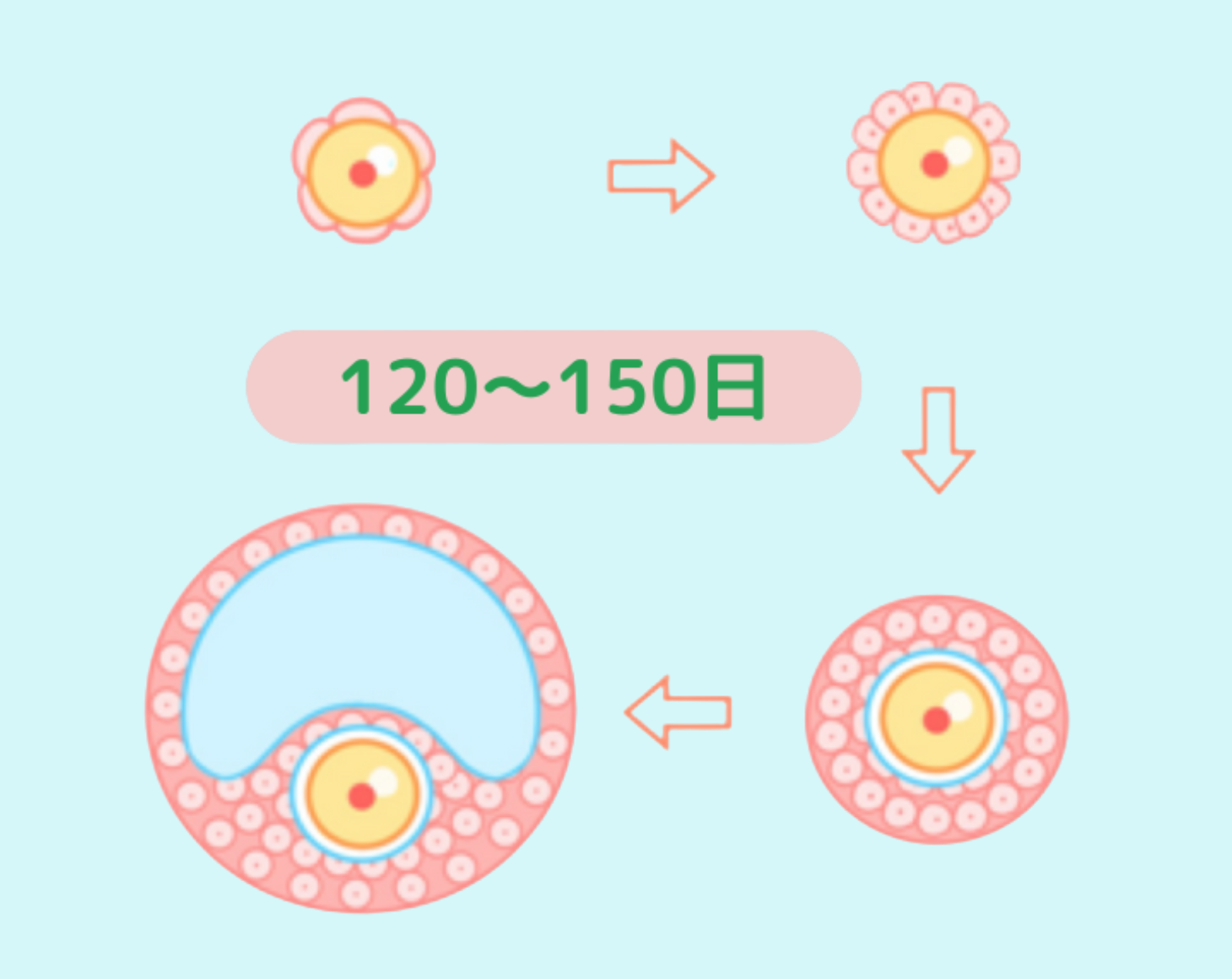 原子卵胞から成熟卵胞になるまでの120日〜150日。